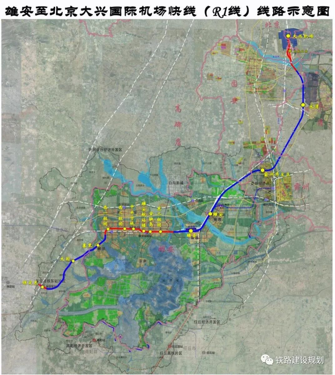 前不久,《雄安至北京大兴国际机场快线(R1线)工程环境影响报告书(征求意见稿)》公布。环评书显示,R1线途经北京市大兴区,河北省廊坊市的固安县、永清县、霸州市,以及雄安新区。
