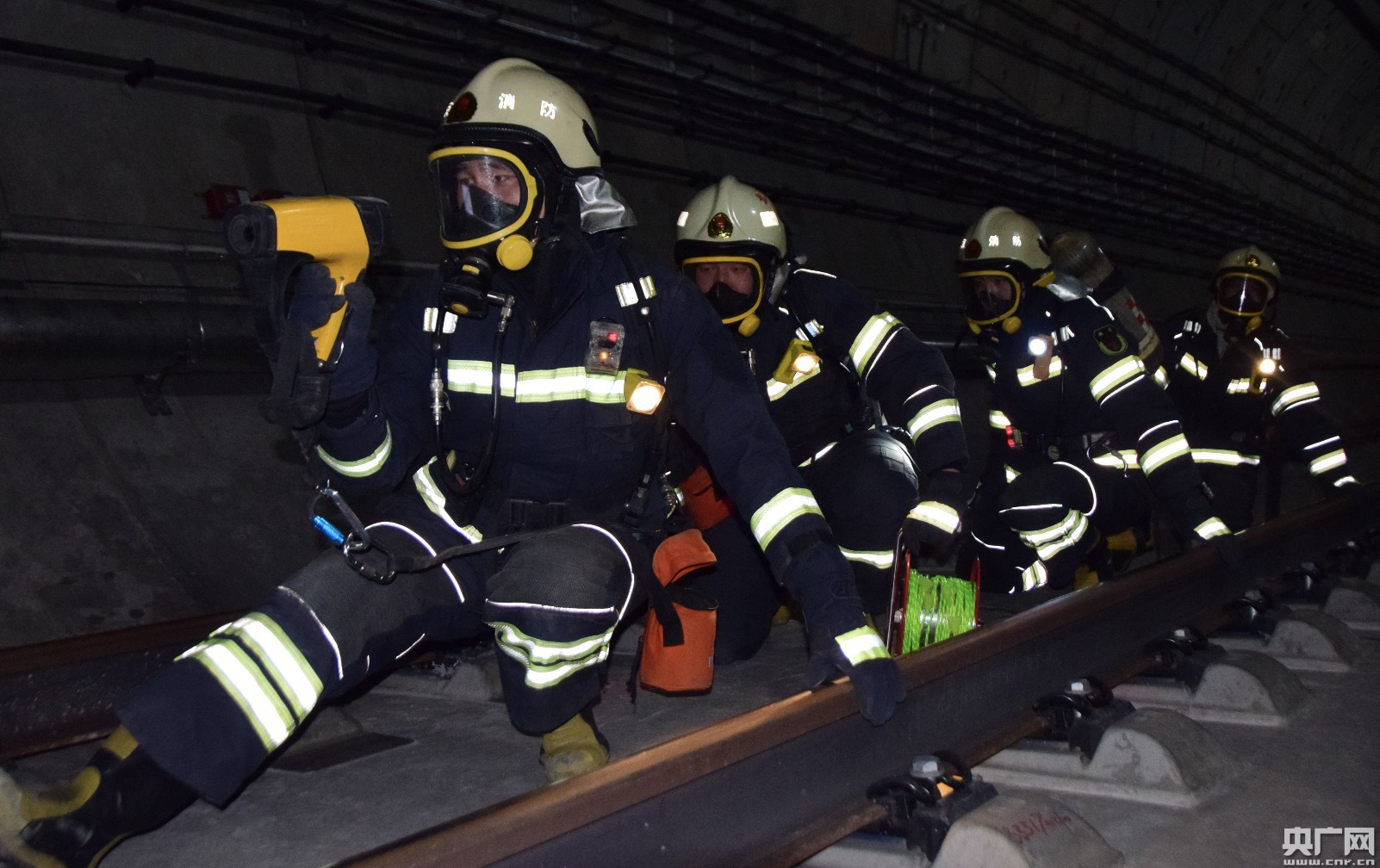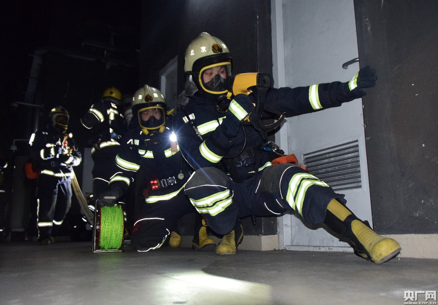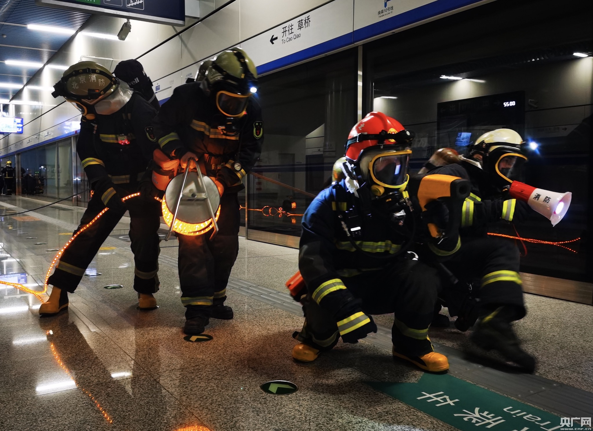 这是12月11日凌晨,新机场线大兴新城站开展灭火救援综合实战联合演练的一幕。为进一步提升队伍地铁火灾事故灭火救援实战能力,北京市大兴区消防救援支队联合北京市消防救援总队轨道交通支队、特勤支队以及北京轨道运营公司在新机场线大兴新城站开展地铁火灾灭火救援综合实战演练,共计14辆消防车、80余人参加此次综合实战演练。