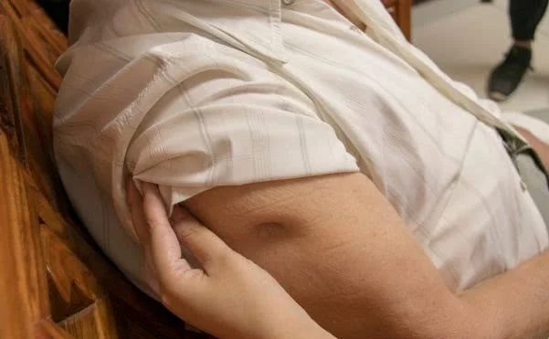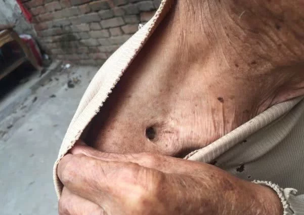 △文老曾被子弹打穿的右肩膀他嫉恶如仇,却有一颗极为柔软的心,他最怕见到的,便是别人流眼泪。有一回,文老从部队外出办事,途中看见一对母女相拥哭泣,一问,才知道原来是饥寒难忍。他看着不忍心,就给老妈妈买了馍吃,见女儿泪眼汪汪的,又接着买了一块给她。两个人拿着馍,却哭得更厉害了。文老顿了顿,把外衣脱下来给她们,两人说不要,老兵安慰道:“你们拿着,当兵的有的发。”(其实当时部队的生活也十分艰难)那天办完事,文老是饿着肚子回部队去的。