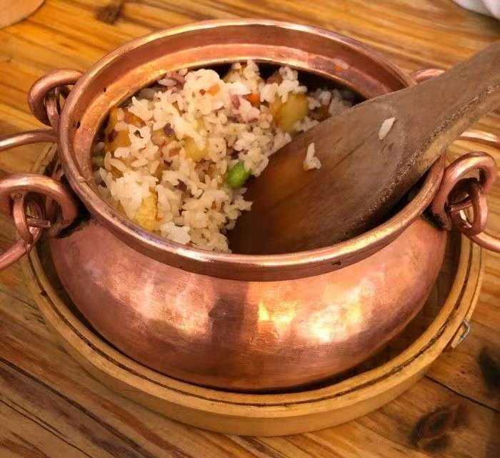 晚上回到束河古镇,吃了一餐很不错的美食,店铺环境很好,服务热情,做的美食味道挺好的,喜欢她家的铜锅饭,味道贼好吃,价格也不贵,赚到了,必须支持!