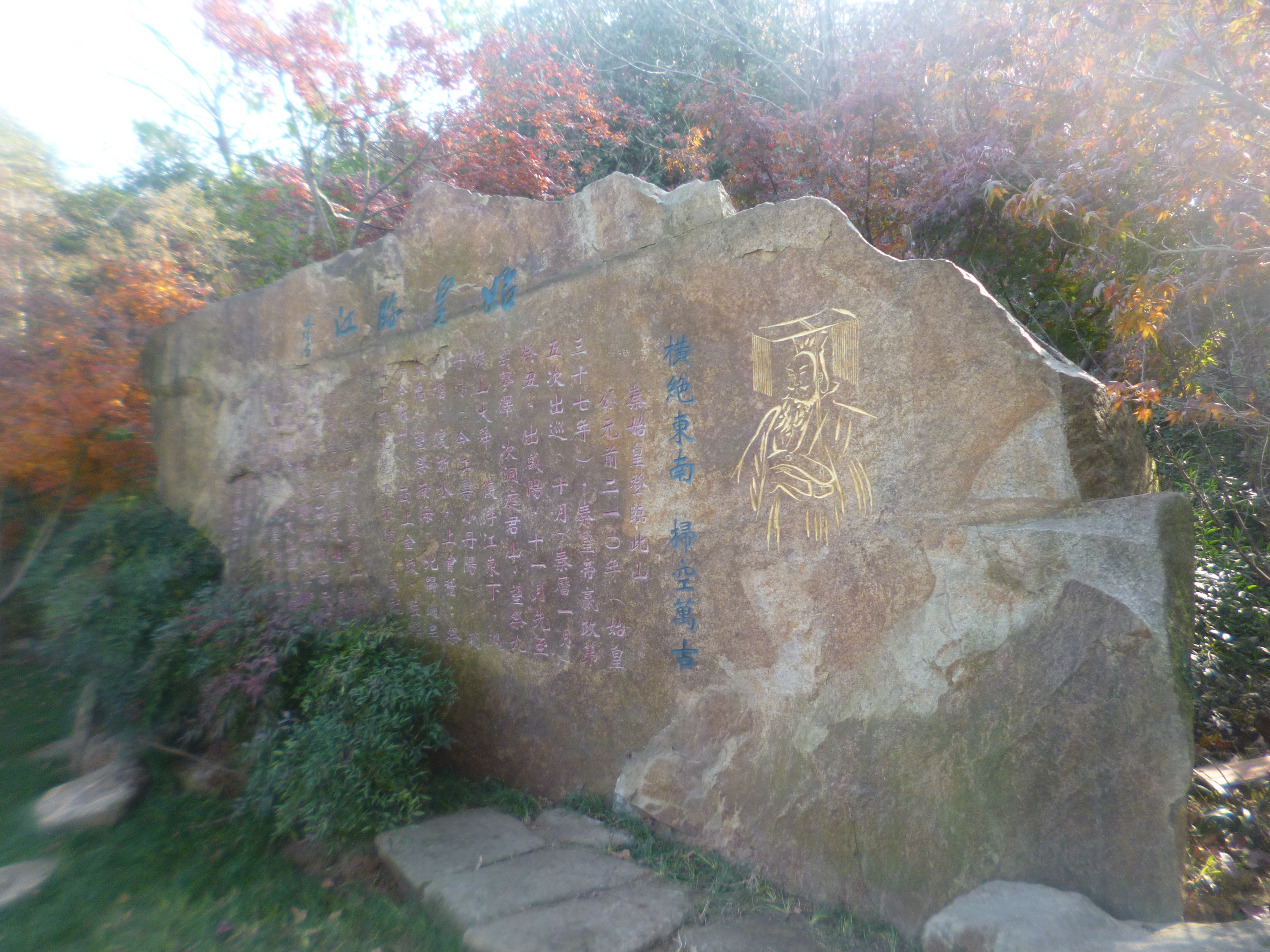 (二)、 始皇 临 江处 始皇临江处位于中峰半腰北侧。据汉司马迁《史记》载,公元前210年,秦始皇东巡,北返时登临摄山(栖霞山),有彰显四海一统、雄视千古之意。该景点于2006年春修建,为一仿古建筑,包括重檐亭、廊、轩以及观景平台,是阅江揽胜之绝佳之地。