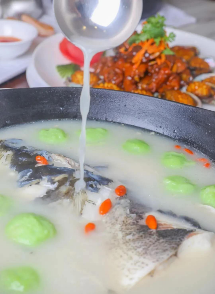 不得不说,温泉一泡,忘却烦恼。我们一家人就一直这样泡着,居然忘记了时间,不知不觉就泡了两个多小时。换好衣服,我要带父母去饱餐一顿。 俗话说:“药补不如食补。”既然来到赫赫有名的药都,又怎能不来一顿极富特色的药膳大餐呢?据传,药膳是三国时期神医华佗的独创,如果当真如此,那么亳州的药膳历史也已经历经几千年的流转了。粉蒸枸杞苗、砂仁煮羊肚、古道芍花鸡、金瓜百合,不仅讲究精致食材和中药材的搭配,更是色香味俱全,令人食指大动。老妈说,泡了养生温泉,吃了养生药膳,感觉好像年轻了几岁。