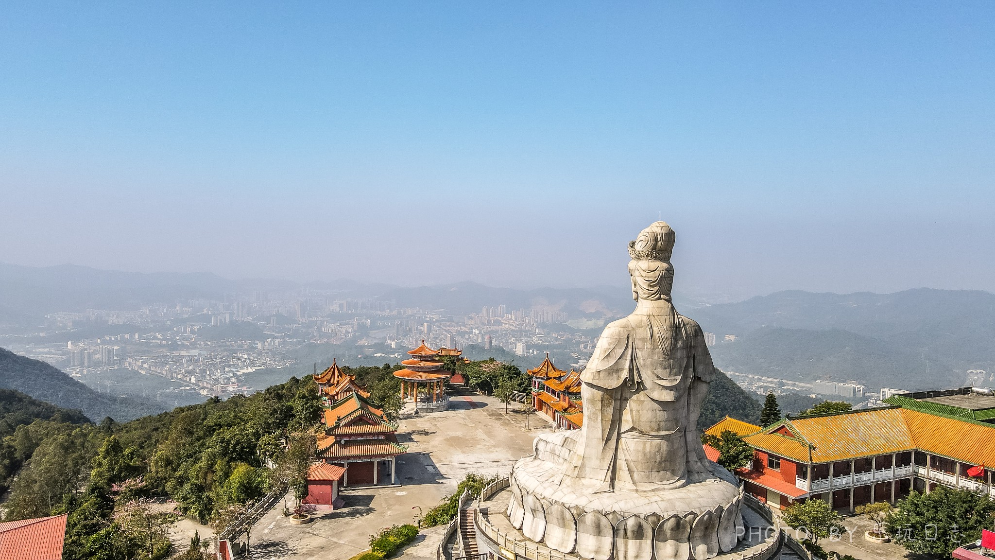 空无一人的观音广场,是航拍、摄影取景的极佳时候。若是赶上日出日落,应该会更加壮观吧。