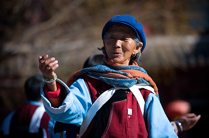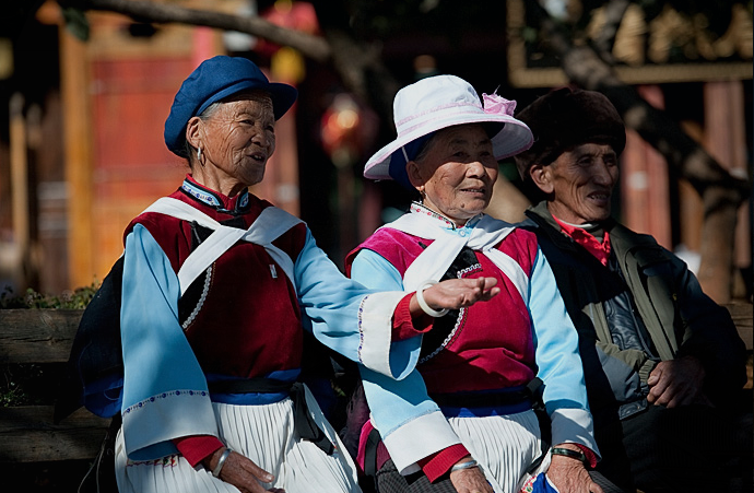 四方街广场上,经常可以看到这些纳西族老奶奶围成一圈,跳着民族舞蹈