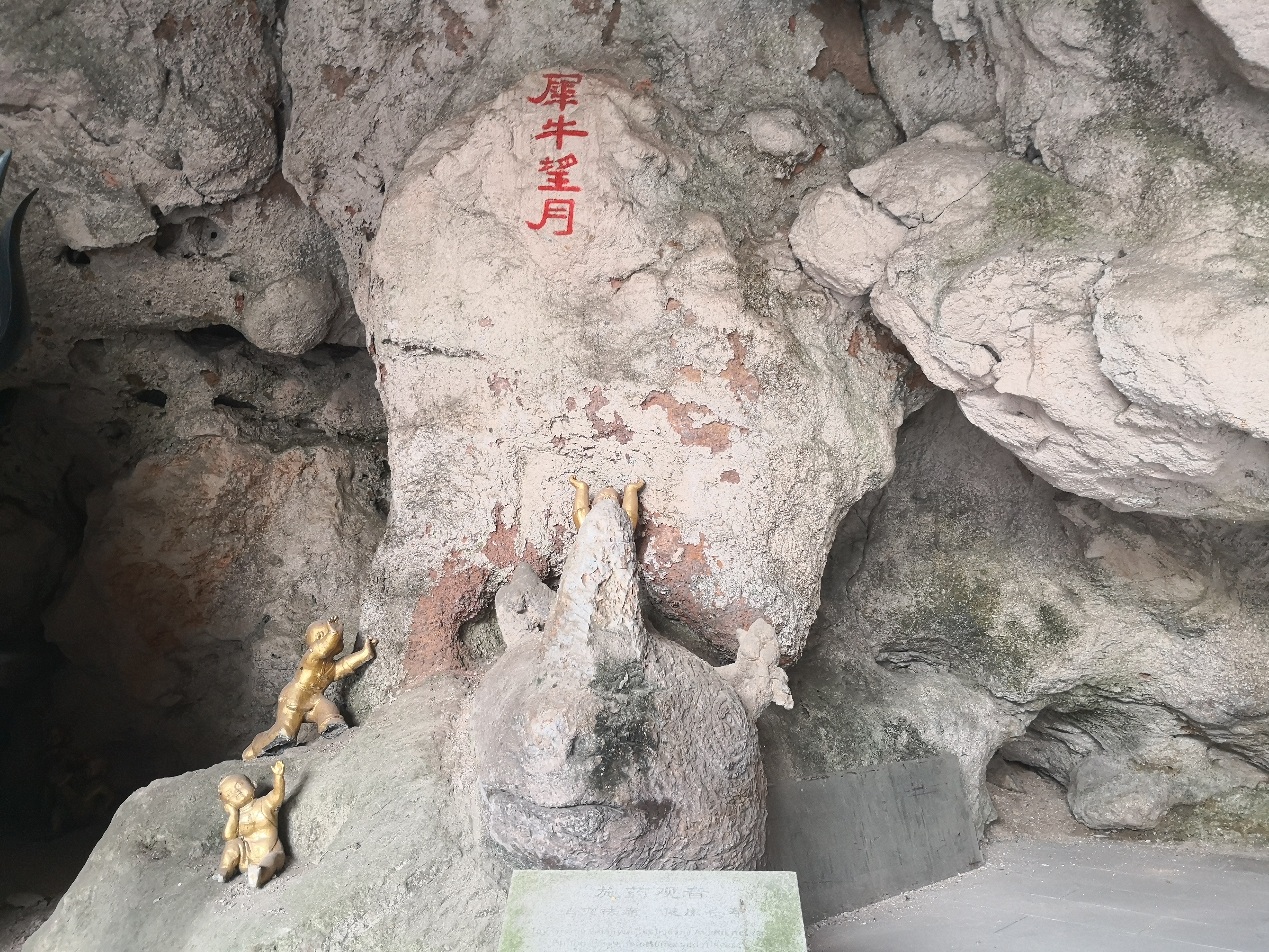 (八)、 犀 牛 望 月 在施药观音像得左边,有一块光突的岩石上正趴着一只生动有趣抬头的犀牛,而得名。