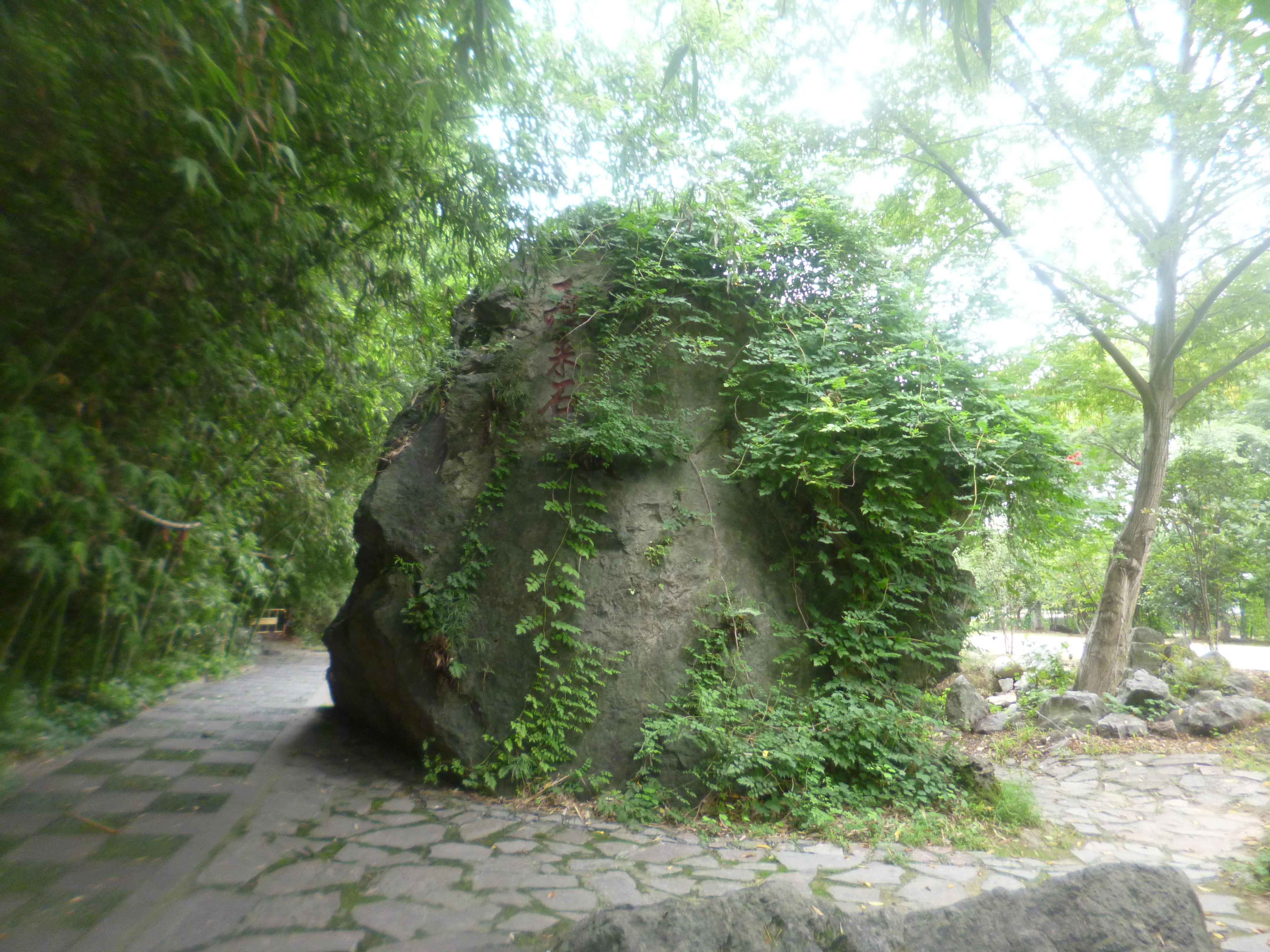 (九)、 飞 来 石 传说朱元璋刚写完寿字,从天上飞来一块飞来石,就好似一位大将守护在寿字旁。