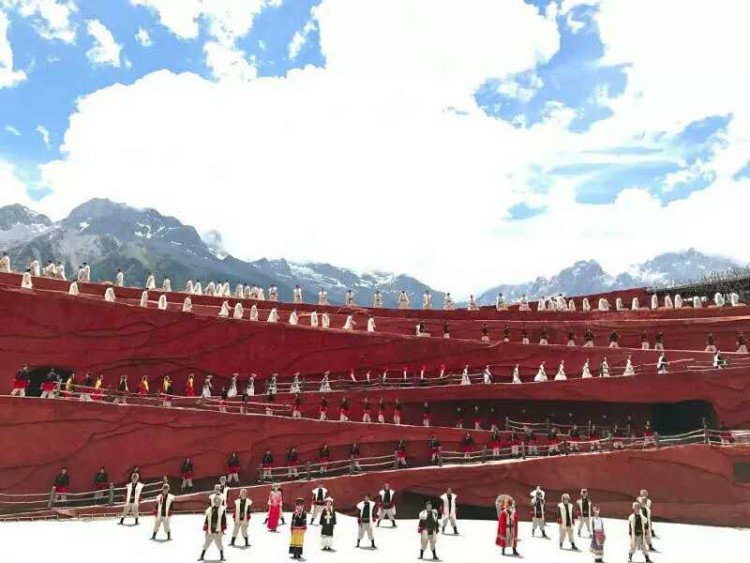 印象丽江 印象丽江以蓝天白云作幕布,地道的纳西人们载歌载舞,歌舞场面宏大壮观。整个表演用这么句话概述也不为过:与天共舞,与地相伴。喜欢文艺范儿的人们不妨也来感受一下这种豪放的与天地共舞的民族风情。 9.飞向泸沽湖,女儿国不止在西游