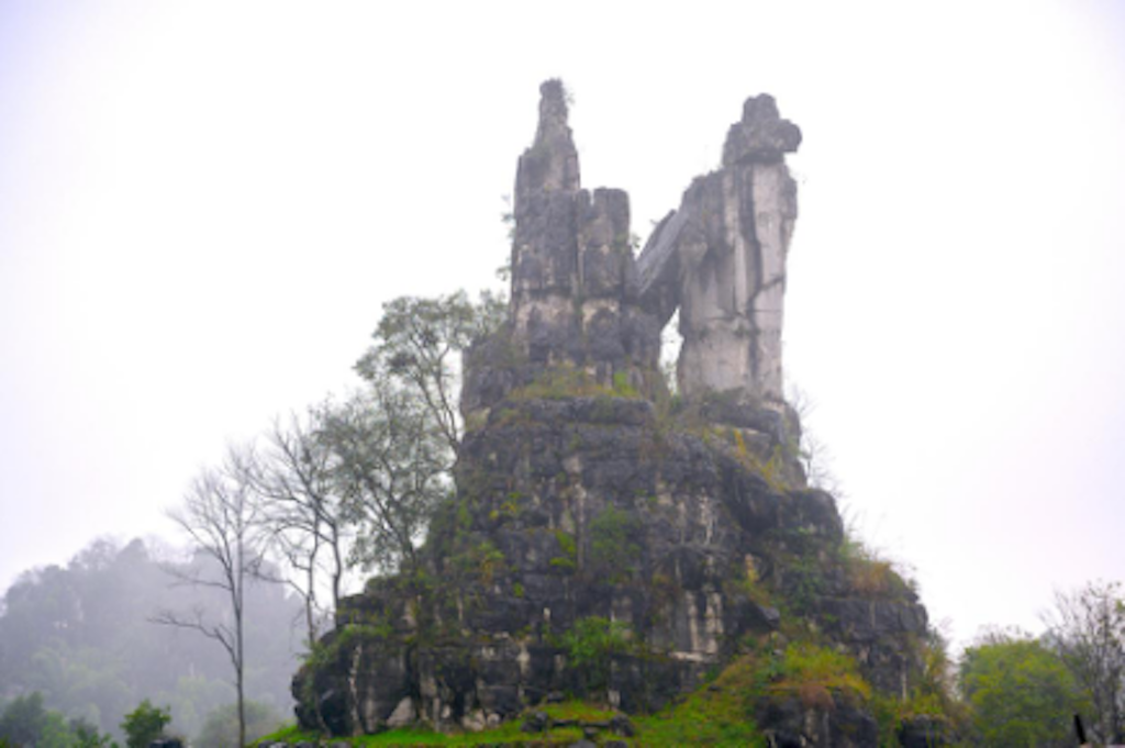 游兴文石海美景 兴文石海的茫茫的石海地表,座座峰峦围绕着一处直插蓝天的俊俏石峰,这座石峰便是有名的夫妻峰。据悉两石高者为夫、矮者为妻,中夹一块垮落石头,倾斜而自然,仿佛是心心相印的一对夫妻,在那里携手絮语。向左走一程再瞧,似乎高者是妻,矮者是夫,中间的巧石恰如妻子的手搀扶着丈夫,情意缠绵地遥望着天空。至于它们的故事似乎有点长,只有下次慢慢到来。