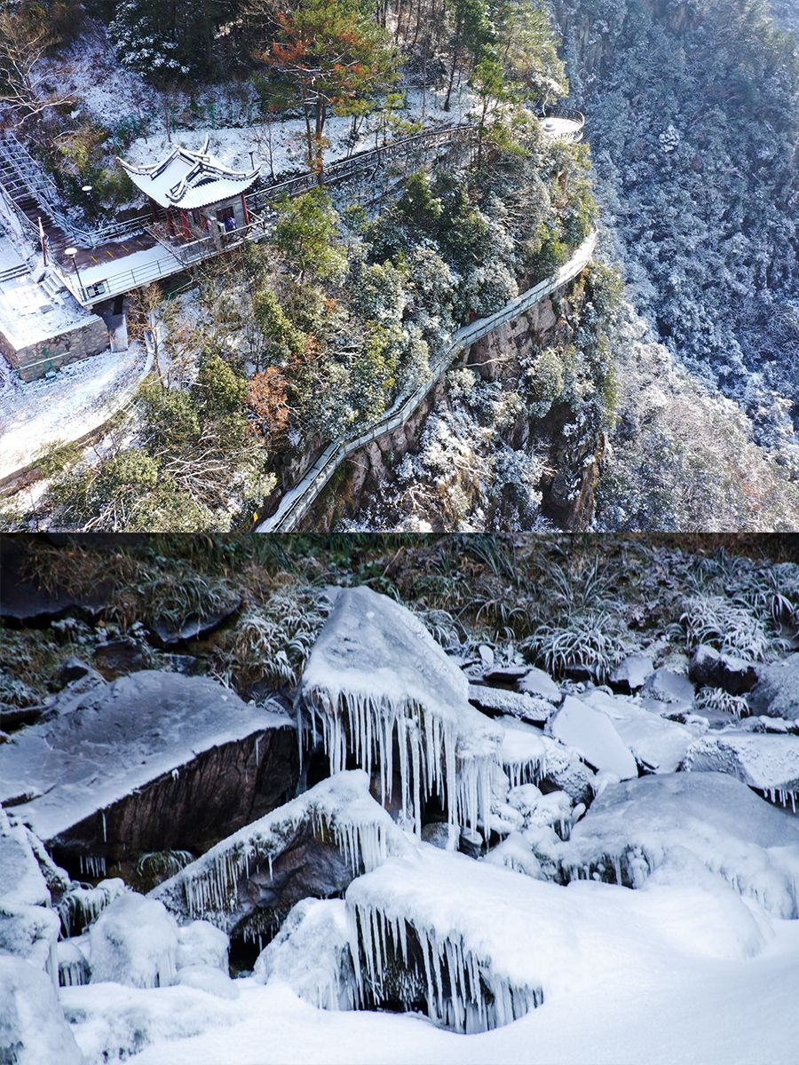 05 徐凫岩步云谷 游玩时间:过夜 徐凫岩是整条线路的中转站,选择徐凫岩中转是因为这里的景色、和体验项目。徐凫岩的飞瀑溅雪奇观是每年冬天的一大亮点,溪水从200多米的悬崖上飘落,在空中遇冷凝聚成雪,纷纷扬扬地铺满谷底,这种大自然馈赠的奇景,绝对值得一看!