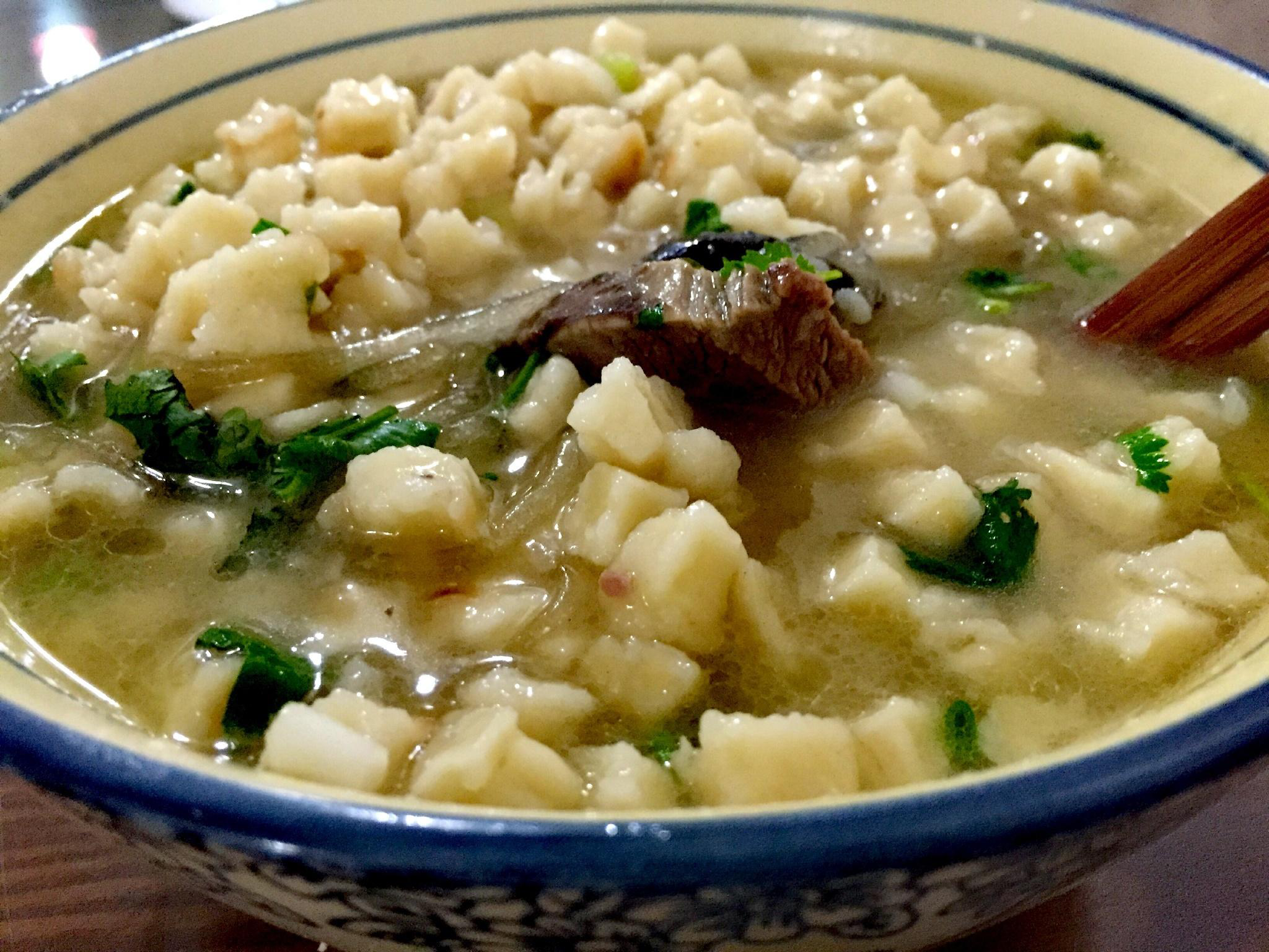西安的泡馍又有多少种呢?一碗泡馍根据食材和做法的不同也可以玩出很多花样,牛羊肉泡馍、葫芦头泡馍,还有豆花泡馍也非常有名。无论什么种类的泡馍,馍与汤头一样重要,自己亲手掰成小块的馍浸泡在汤汁里,筋道又饱含汁水,再搭配上一碟灵魂糖蒜,在这寒冷的冬季,来上一碗热乎乎的泡馍是最好不过的了。