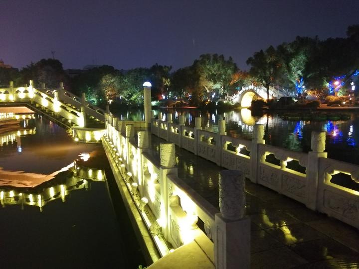 阳桥底下的雕塑很漂亮 夜游桂林两江四湖,桥是最大的亮点,美得都想走一遍 图文:刘国雄 桂林两江四湖环城水系是与漓江齐名的又一条黄金水道,它是一个开放式的旅游休闲场所,类似于杭州西湖,不收门票,区域很大,是一个集交通与旅游的环城水系。两江四湖让桂林实现了“城在景中,景在城中,城景交融”,成为桂林的旅游名片。 既然是环城水系,桥肯定是必不可少。两江四湖上的桥有10几座,到处建设的时候,市里就觉得桂林是国际旅游城市,两江四湖的桥梁一定要建成名桥,就是要吸纳中外名桥的精华,以世界名桥为蓝本,同时结合桂林山水城市的天然环境,兼容并蓄,因地制宜,加以创新,突出特色。所以,两江四湖就有了古榕双桥、西清桥、彩虹桥、丽泽桥、玻璃桥、北斗七星桥、玻璃桥等富有想象力、更富有激情的桥。 据说,当初桂林两江四湖建设的时候,有些人对湖上的各种桥以世界各地的名桥为蓝本建设持反对意见,现在看来,这些桥倒是成了两江四湖的亮点。 桂林两江四湖可以分日游和夜游,夜景中,桥是其中一个最大的亮点。这些桥形态各异,各具特色,可以说为美丽的桂林添光增彩。而那个玻璃桥是独特的存在,以往来都是收费的,去年底路过,发现居然是免费了,所以得上去看看。果然,这条玻璃桥很漂亮,打上不同的灯光后就更美了。榕湖上的这条北斗桥。打上灯光后,比白天漂亮多了。 另外,桂林两江四湖很多桥除了看外观,桥底下的雕塑也是极有看头的哦。